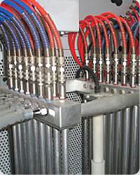 供粉中心 是實(shí)現(xiàn)快速換色的關(guān)鍵設(shè)備,噴涂時,其實(shí)現(xiàn)粉末的自動回收過濾,粉末的自動配比及粉末的自動供應(yīng)。在換色清理時,其提供強(qiáng)力脈沖氣流,快速有效的自動清理吸粉管、粉泵、粉管及噴槍內(nèi)管。 ◆供粉中心的特點(diǎn):